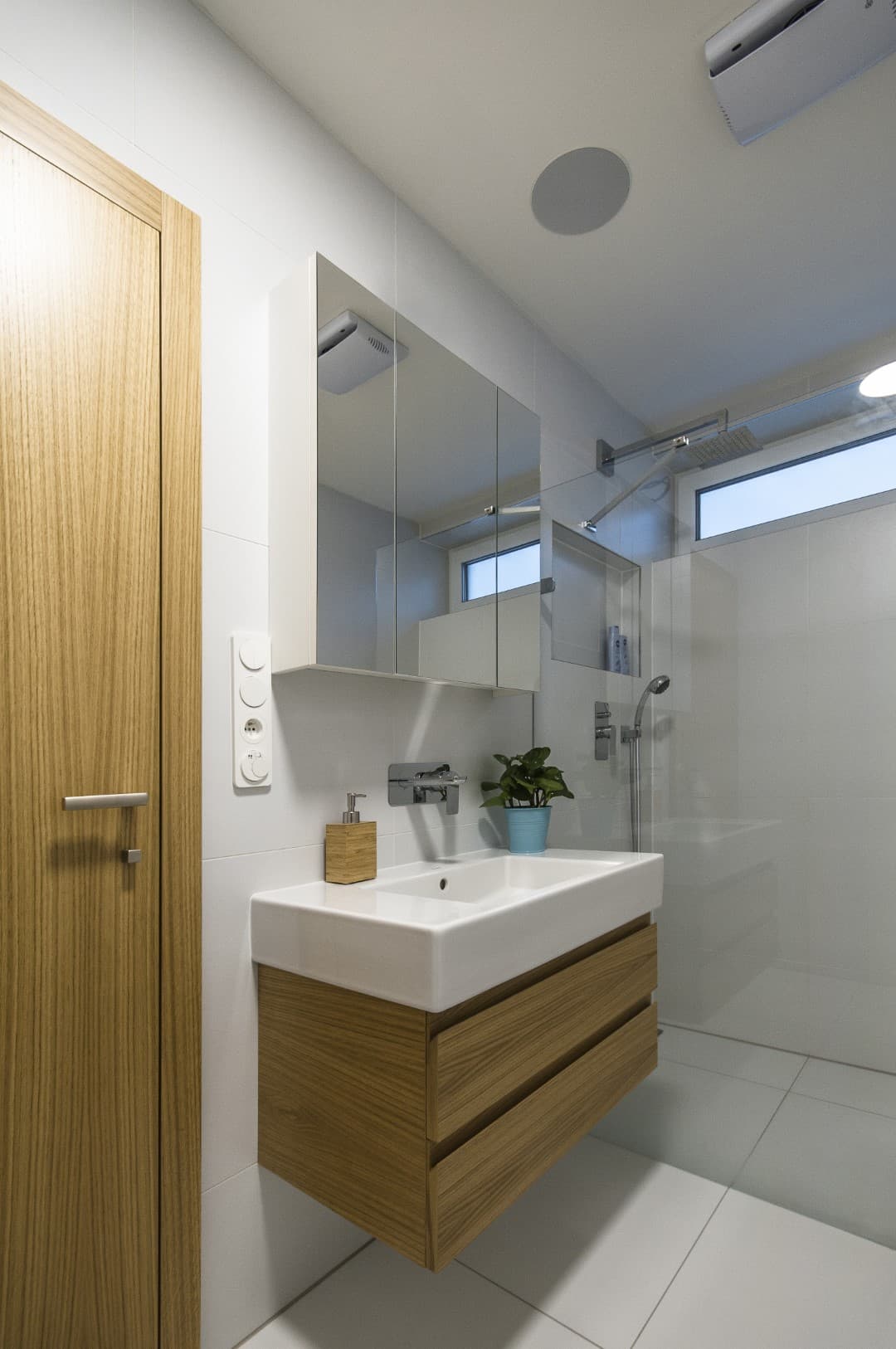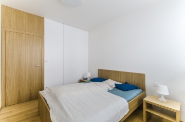 Kování a dveře: Použito prémiové kování Blum, panty Simonswerk Tectus a designové kliky od českého výrobce MT kliky.